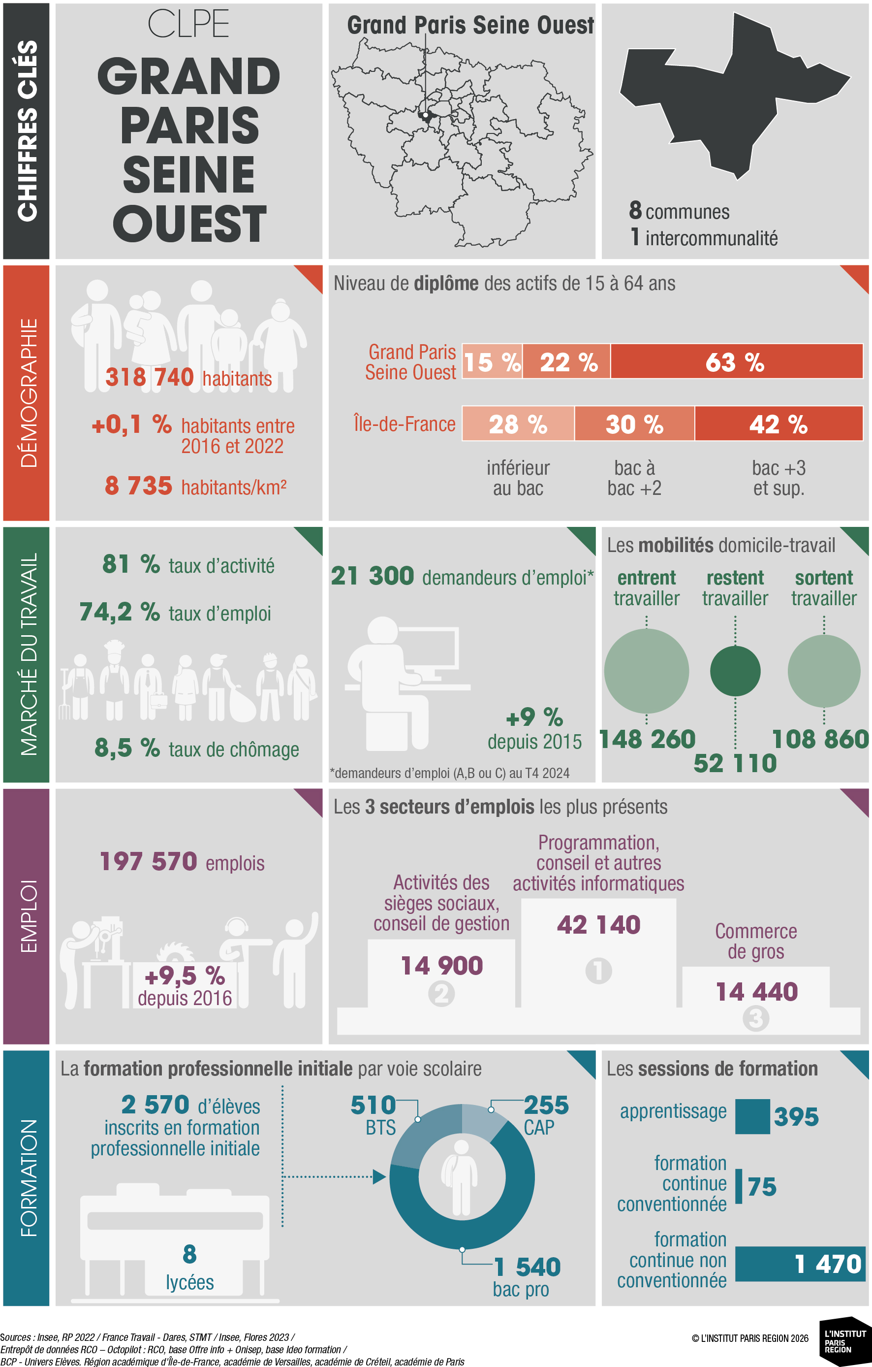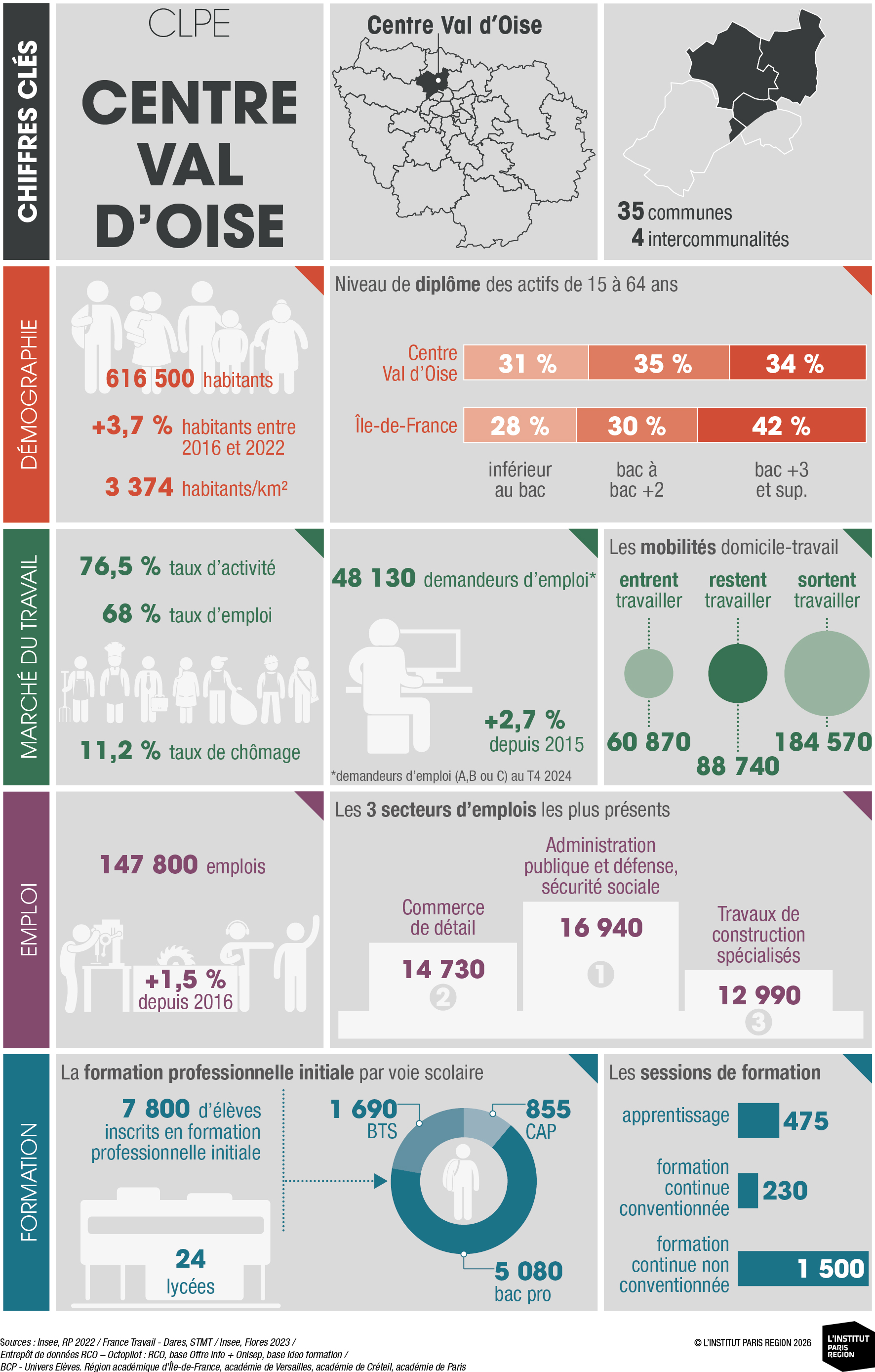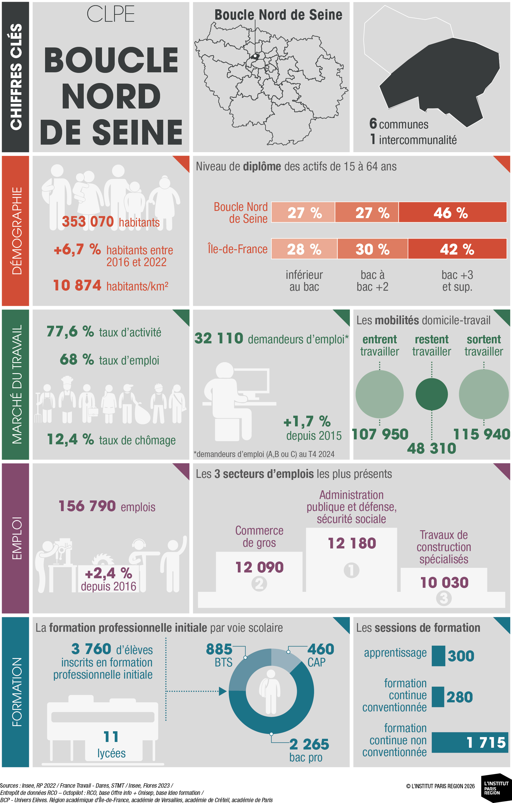 Les portraits territoriaux des Comités Locaux Pour l’Emploi (CLPE), réalisés par l’Observatoire régional de l'emploi et de la formation (OREF) francilien sous l'égide de la Drieets Île-de-France et du Conseil régional d'Île-de-France, proposent une synthèse statistique inédite à l’échelle de ces nouveaux périmètres géographiques.
