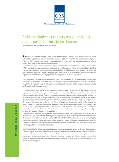 Epidémiologie des cancers chez l’enfant de moins de 15 ans en Ile-de-France