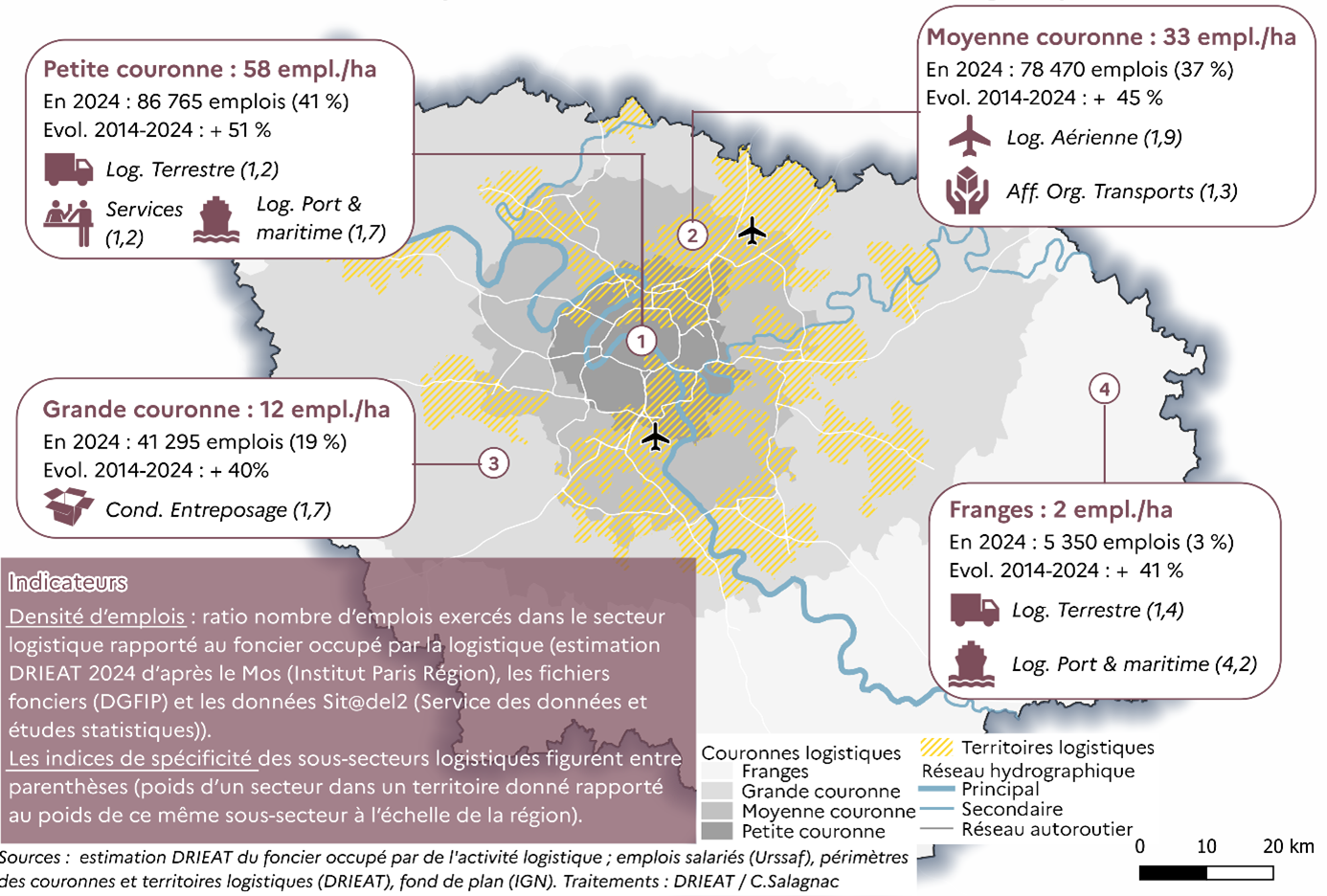 • 58 emplois/ha de foncier mobilisé en petite couronne logistique contre 2 emplois/ha dans les franges
