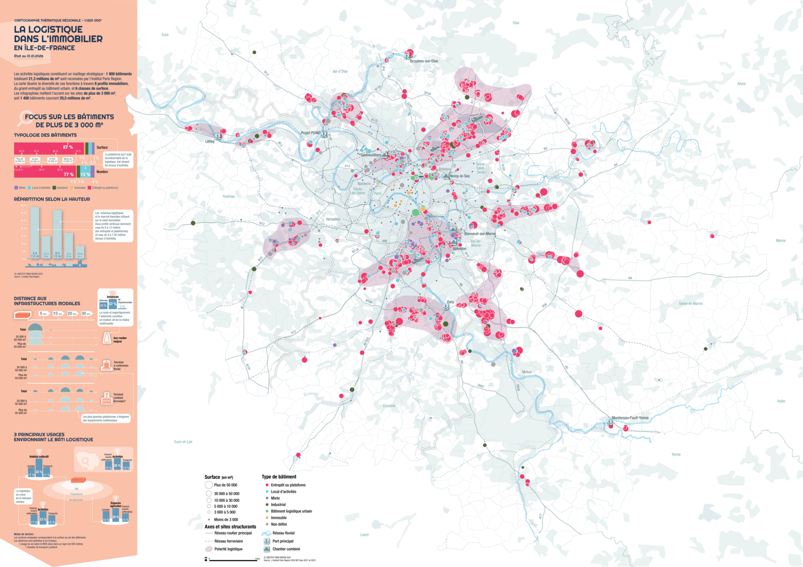 Des cartes dynamiques qui permettent une visualisation territorialisée des données disponibles concernant les infrastructures et les flux fret, les emplois et entreprises de la logistique, le parc routier de transport de marchandises.
